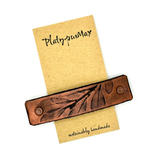 Silver Pressed Hydrangea Flowers Embossed Leather Hair Clip
