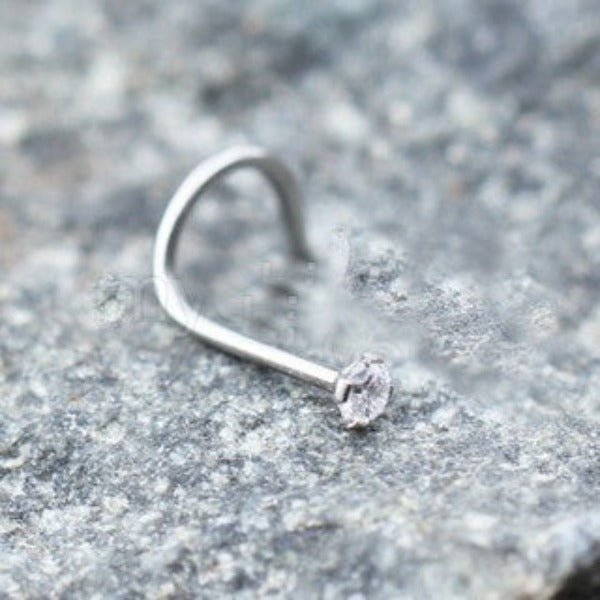 316L Stainless Steel Prong Set CZ Screw Nose Ring