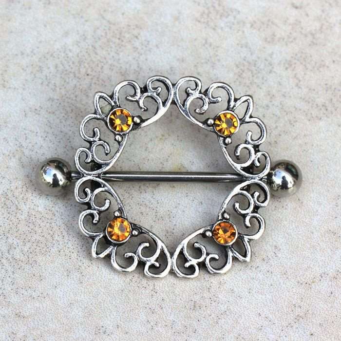 316L Stainless Steel Topaz Ornate Nipple Shield