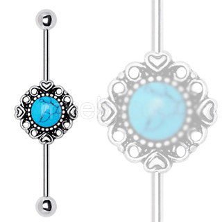 316L Stainless Steel Vintage Charm Industrial Barbell with Turquoise Stone