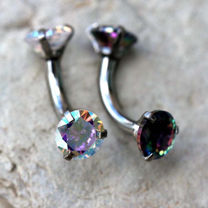 Internally Threaded 316L Stainless Steel Prong Set Iridescent Cubic Navel Ring